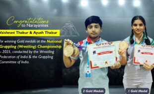 Narayana School students Ayush and Vaishnavi Thakur win 3 gold medals at the National Grappling Championship 2025, showcasing excellence in sports and academics.