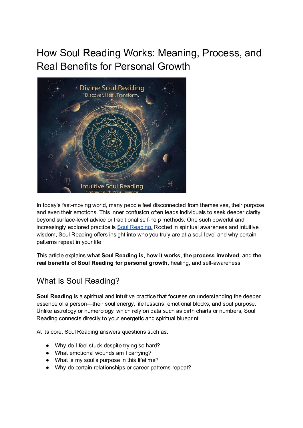 A complete guide to soul reading that explains its purpose, meaning, and real-life benefits. This guide covers how soul reading works, its spiritual significance, emotional clarity, inner awareness, and guidance for life decisions. Ideal for those seeking deeper self-understanding, healing insights, and alignment with personal energy through spiritual practices rooted in intuition and awareness.
