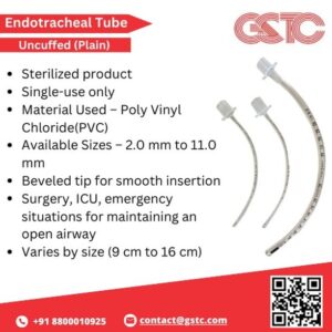 The GSTC Uncuffed Endotracheal Tube is a high-quality, reasonably priced device designed for dependable airway management in clinics and hospitals. This tube provides exceptional flexibility and a seamless insertion experience because it is made of medical-grade PVC. intended to promote efficient ventilation and withstand kinks.
