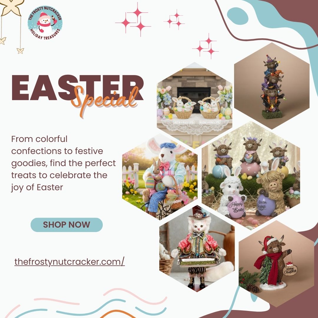 The Frosty Nutcracker offers a delightful collection of Easter Bunny Ornaments and Easter Egg Ornaments, perfect for adding festive charm to your Easter décor. Each ornament is thoughtfully designed with bright colors and playful details that capture the joyful spirit of the season. These decorations are ideal for Easter trees, home displays, baskets, or thoughtful seasonal gifts. Whether you’re decorating for a family gathering or simply celebrating spring, our unique ornaments bring warmth, color, and happiness to any space, making your Easter celebration even more special and memorable for everyone. 🐰🥚🌸