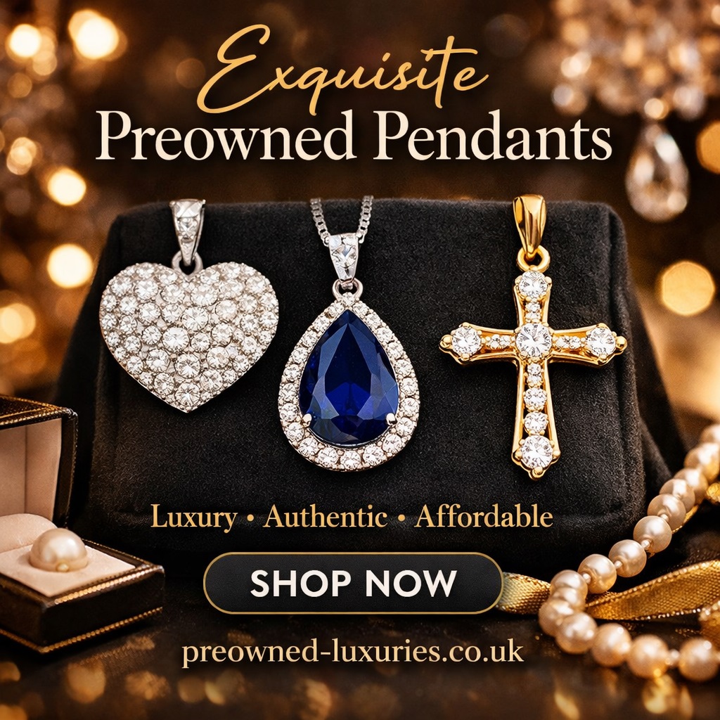 Explore a stunning collection of preowned luxury pendants at Preowned Luxuries UK. Each piece is carefully curated for quality, authenticity, and timeless style. From diamond pendants to gold and gemstone designs, find elegant accessories that match your personality β€” all at affordable preowned prices. Perfect for gifts or personal style upgrades. Why choose our pendants: – πŸ’Ž High-quality luxury pieces – diamonds, gold, and gemstones – ♻️ Sustainable fashion – eco-friendly and preowned – 🎁 Perfect gifts – ideal for anniversaries, birthdays, or special occasions – πŸ’· Affordable luxury – own a designer piece without breaking the bank – πŸ›οΈ Verified authenticity – all pendants come with certification ✨ Elevate your jewelry collection with timeless elegance today. Browse our exclusive range of preowned pendants and find a piece that tells your storyβ€”luxury, authenticity, and sustainability all in one place. Shop now and shine with confidence. ✨