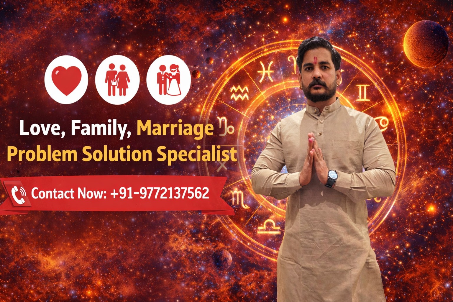 Family problems such as husband–wife conflicts, misunderstandings between family members, parental objections to marriage, or negative energy in the home can cause stress and emotional pain. Pt. Vikram Sharma claims to analyze a person’s horoscope and suggest personalized astrological remedies designed to remove obstacles and improve relationships.