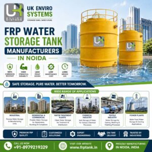 UK Enviro Systems stands among top FRP Water Storage Tank Manufacturers in Noida. Our advanced filament winding ensures uniform wall thickness and superior strength. Opaque construction blocks sunlight, keeping water cool and algae-free. Lightweight design reduces rooftop structural load. Tanks resist chemicals, UV rays, and thermal shock. Ideal for residential colonies, hotels, and industrial cooling towers. Get maintenance-free storage that lasts 25+ years.