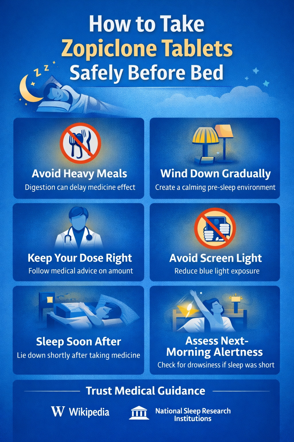 Learn how to take Zopiclone tablets safely before bed with expert guidance on timing, dosage awareness, bedtime routines, and lifestyle factors. This evidence-based guide helps health-conscious readers understand responsible short-term use, reduce night-time risks, and support natural sleep quality with informed, safety-first habits.