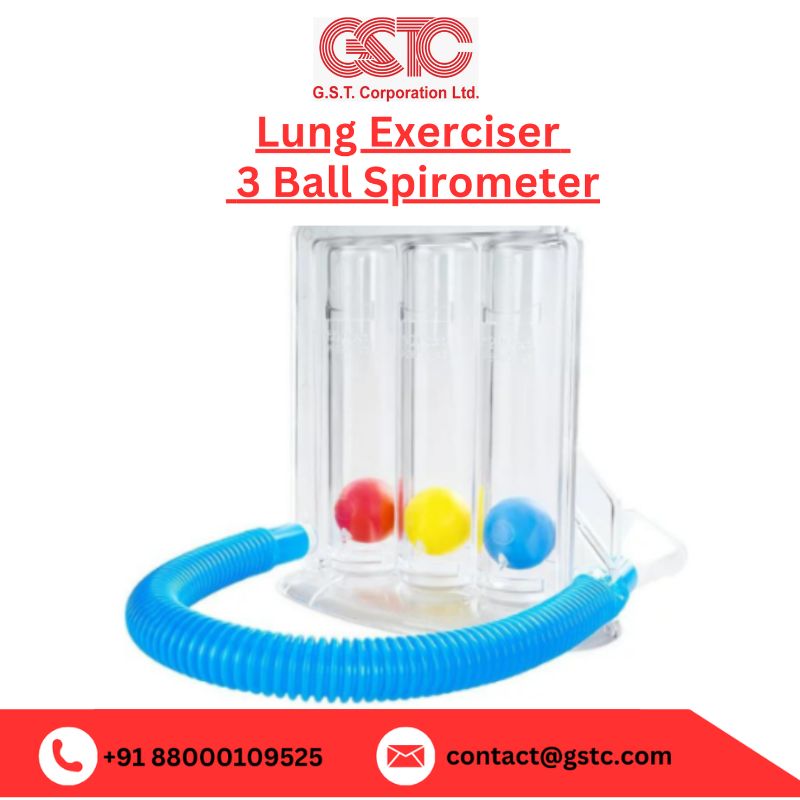 The three-ball Lung Exerciser helps patients practice deep breathing exercises effectively. Each chamber measures inhalation strength, allowing gradual improvement in lung capacity. Doctors commonly use it after surgeries or for patients with limited mobility. The device is lightweight, portable, and easy to handle. GSTC, a leading Medical Equipment Manufacturer & Exporter from India, manufactures Lung Exerciser devices with precision and high-quality materials. Our focus on safety, performance, and hygiene makes it suitable for healthcare providers and bulk buyers worldwide.