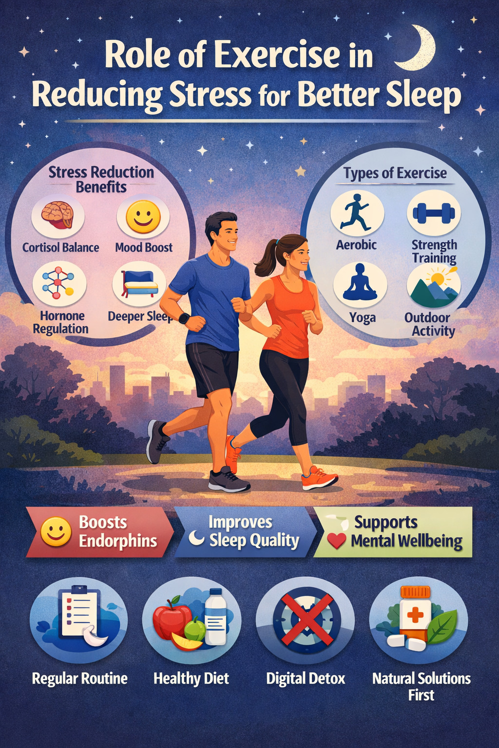 Discover how regular exercise reduces stress, balances hormones, and improves sleep quality naturally. Learn science-backed strategies to enhance emotional stability, regulate cortisol levels, and support restful sleep for long-term wellbeing and sustainable stress management.