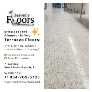 Heavenly Floors Restoration is a locally owned flooring restoration company providing professional terrazzo care restoration experts in West Palm Beach, FL for over 15 years. Our team offers skilled craftsmanship combined with the latest diamond polishing technology, to restore the original beauty and durability of the flooring and eliminate stains and cracks. We guarantee that we will provide the customer with a high-quality finished product that will maintain its shine for as long as possible. Trust our proven local expertise to deliver the highest quality terrazzo floor restoration in West Palm Beach, FL, for your home or business. Call us today to schedule your expert consultation and free estimate.