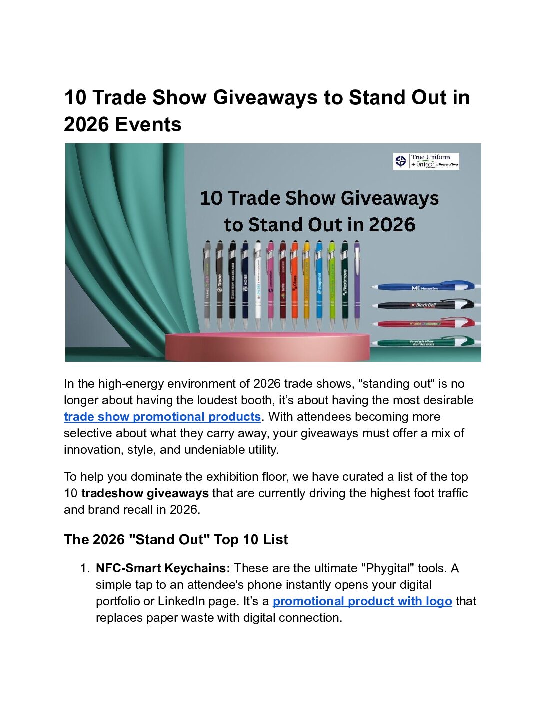 Our latest guide reveals 10 innovative tradeshow giveaways, from NFC-smart gear to eco-tech, that drive maximum foot traffic. Partner with a leading promotional product company for your next big event.