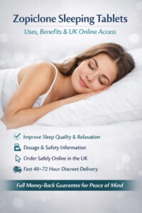 Discover Zopiclone sleeping tablets for improved sleep quality. Learn about uses, benefits, correct dosage guidance, and how to access them safely online in the UK. Enjoy a trusted, customer-focused service with discreet packaging, fast 48–72 hour delivery, and a full money-back guarantee.